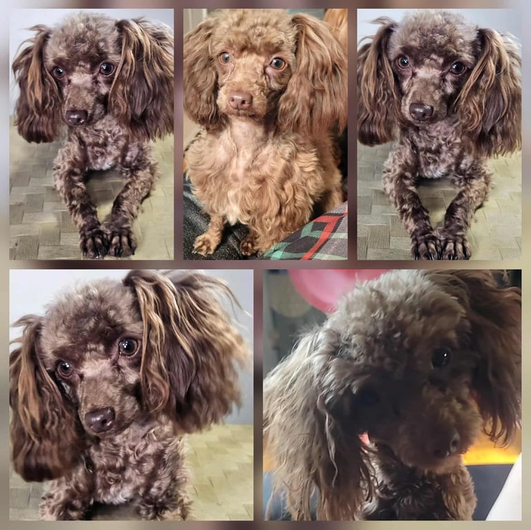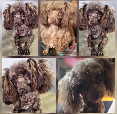 Oh my little Dammit Jeff!! I love this little dude. He is the sweetest baby I think I have ever had. He wants to be in your life and getting love all the time. He has produced his first litter in 8/25 and they are the prettiest babies. I am so excited to see his future in my breeding program. Dammit is a 4 pound chocolate AKC tiny toy poodle. Beautiful!!